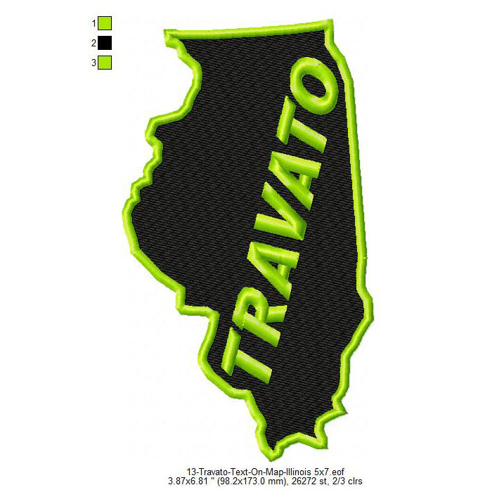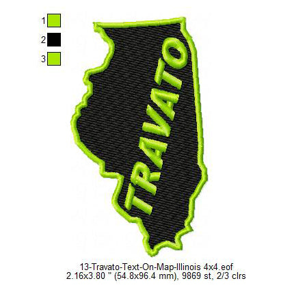 Travato Illinois State Map Designs Machine Embroidery Digitized Design Files