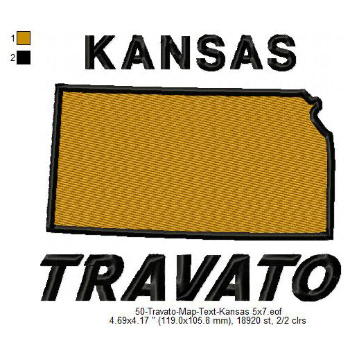 Travato Kansas State Map Designs Machine Embroidery Digitized Design Files