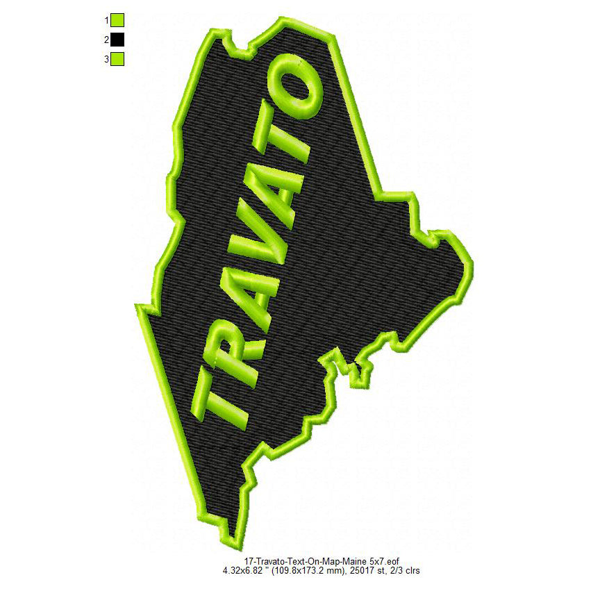Travato Maine State Map Designs Machine Embroidery Digitized Design Files