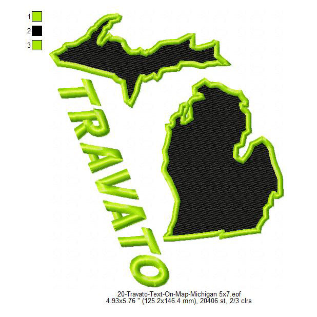 Travato Michigan State Map Designs Machine Embroidery Digitized Design Files