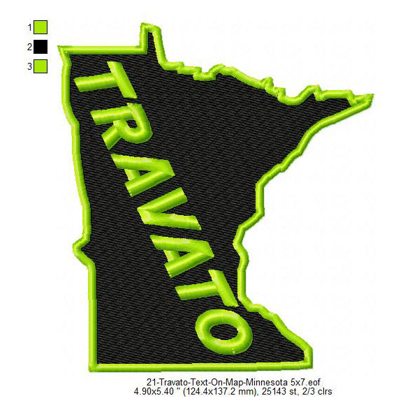 Travato Minnesota State Map Designs Machine Embroidery Digitized Design Files