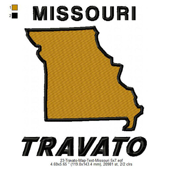 Travato Missouri State Map Designs Machine Embroidery Digitized Design Files
