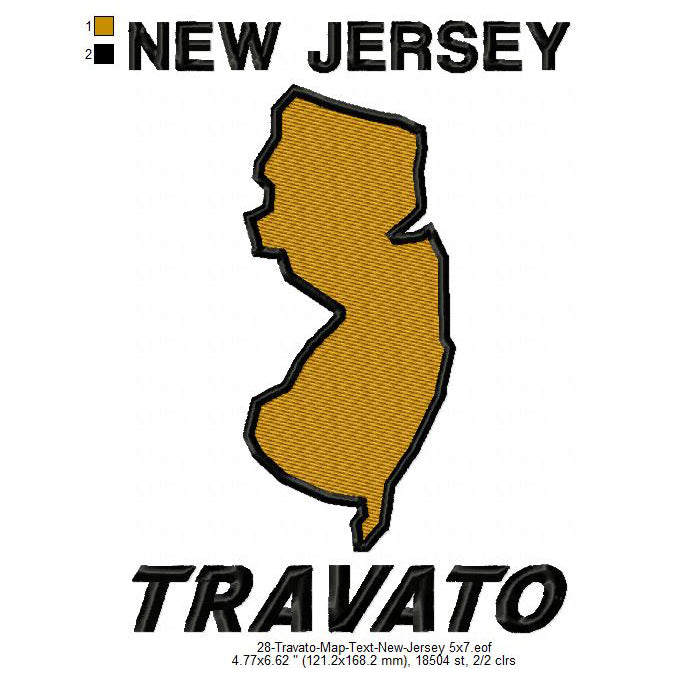 Travato New Jersey State Map Designs Machine Embroidery Digitized Design Files