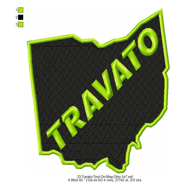 Travato Ohio State Map Designs Machine Embroidery Digitized Design Files