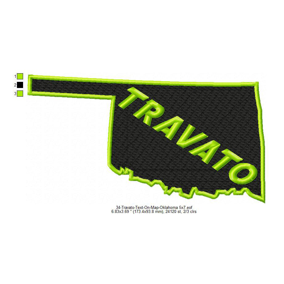 Travato Oklahoma State Map Designs Machine Embroidery Digitized Design Files