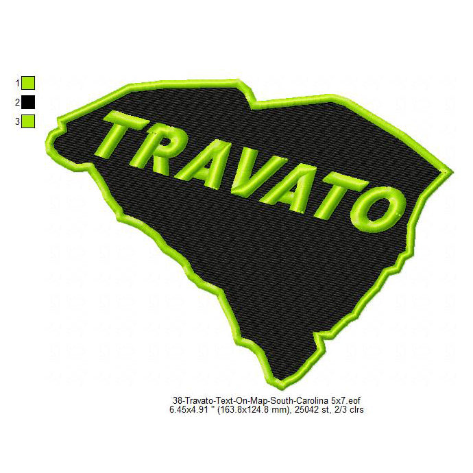 Travato South Carolina State Map Designs Machine Embroidery Digitized Design Files