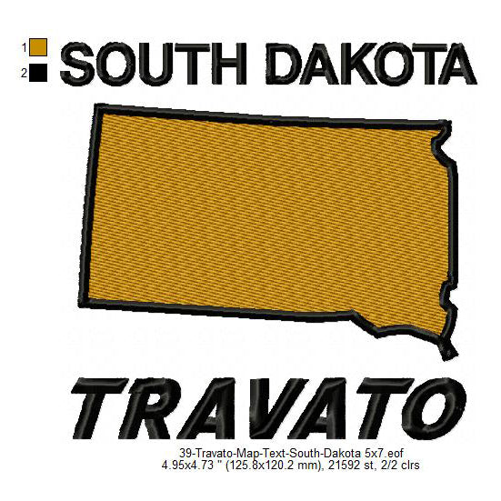 Travato South Dakota State Map Designs Machine Embroidery Digitized Design Files