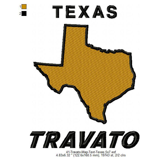 Travato Texas State Map Designs Machine Embroidery Digitized Design Files