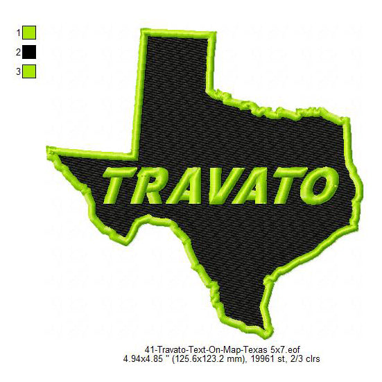 Travato Texas State Map Designs Machine Embroidery Digitized Design Files