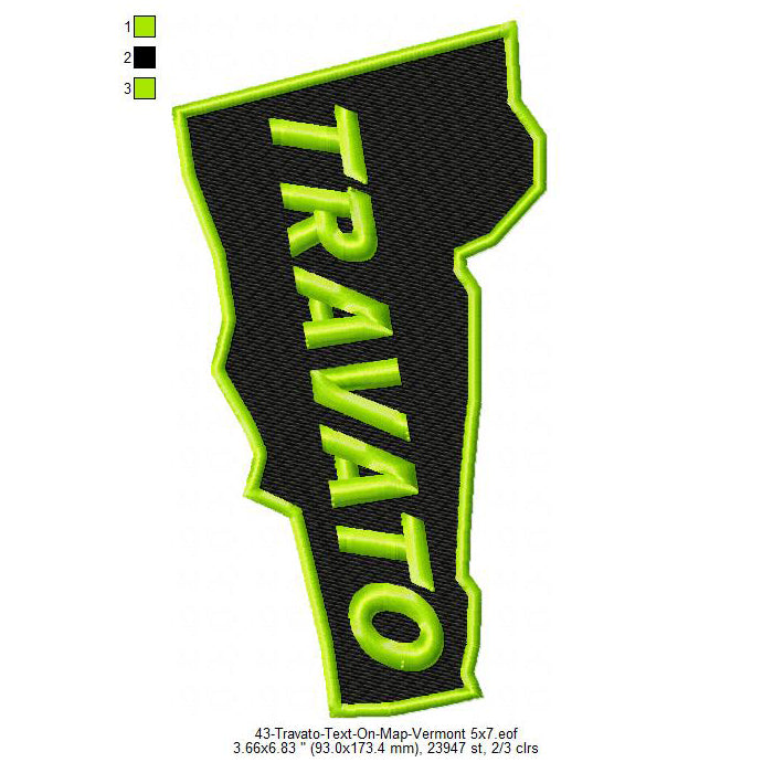 Travato Vermont State Map Designs Machine Embroidery Digitized Design Files