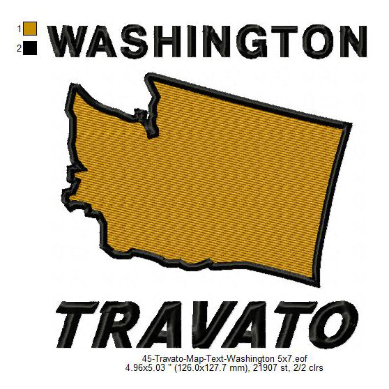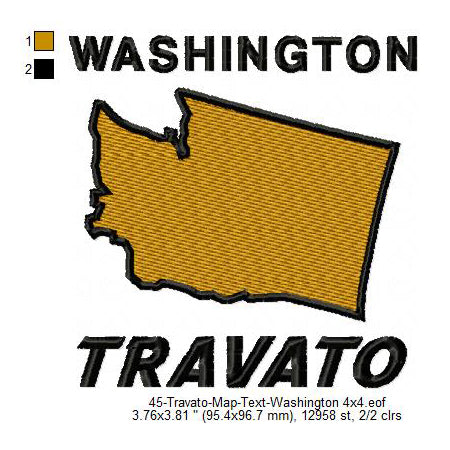 Travato Washington State Map Designs Machine Embroidery Digitized Design Files