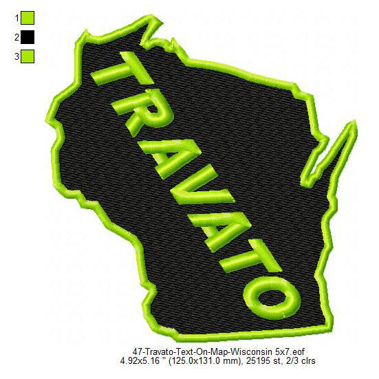 Travato Wisconsin State Designs Machine Embroidery Digitized Design Files