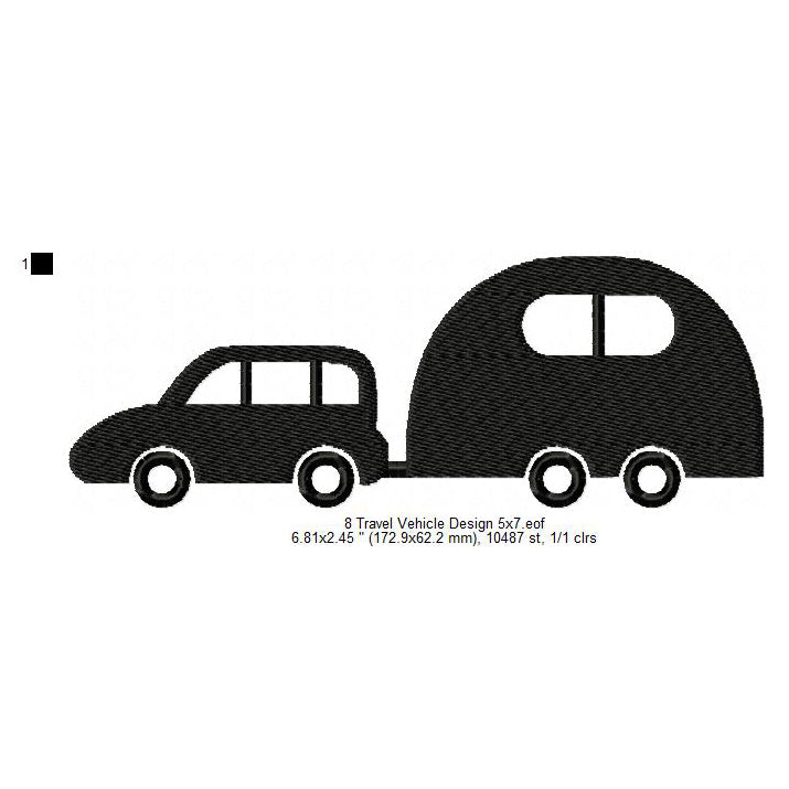 Travel Vehicle Silhouette Machine Embroidery Digitized Design Files