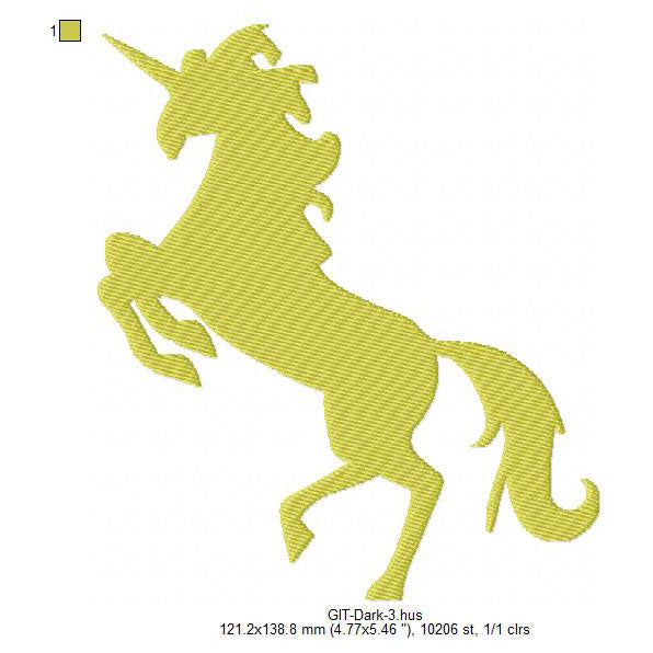 Unicorn Silhouette Glow In The Dark Machine Embroidery Digitized Design Files