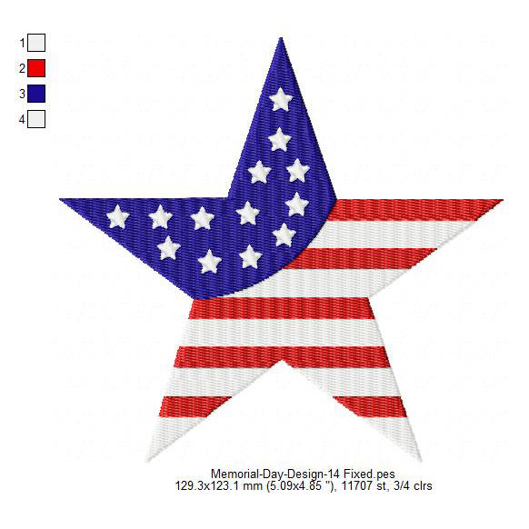 USA Star Flag Memorial Day USA May 26 Machine Embroidery Digitized Design Files