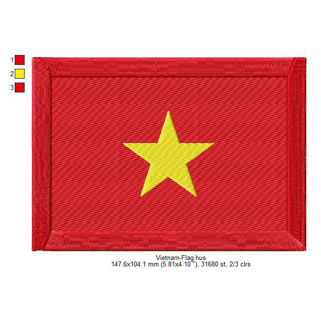 Vietnam Flag Vietnamese Machine Embroidery Digitized Design Files | Dst | Pes | Hus | VP3
