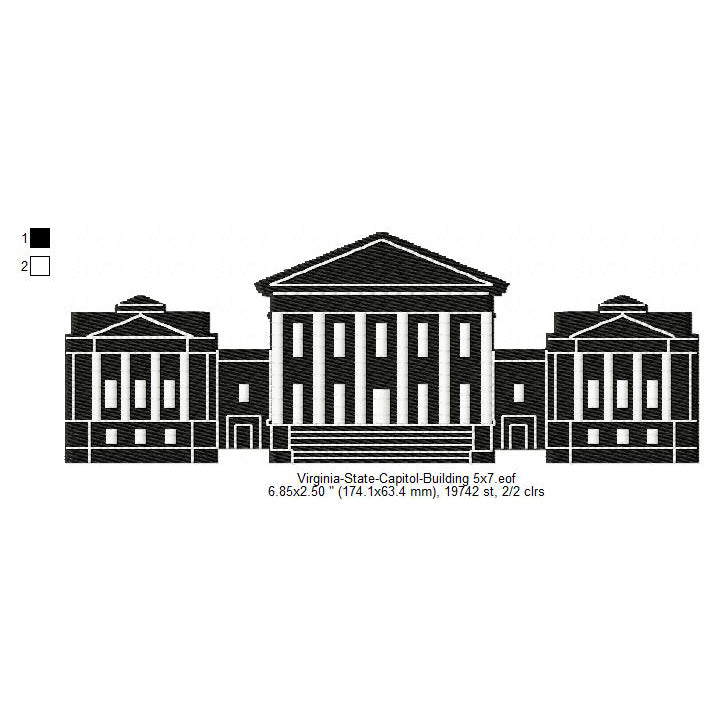 Virginia State Capitol Building Silhouette Machine Embroidery Digitized Design Files