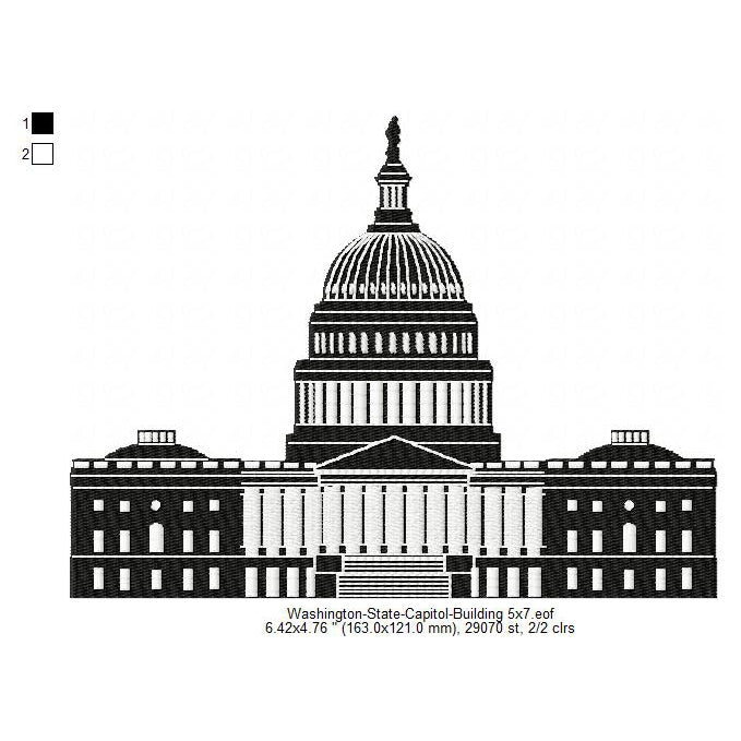Washington State Capitol Building Silhouette Machine Embroidery Digitized Design Files
