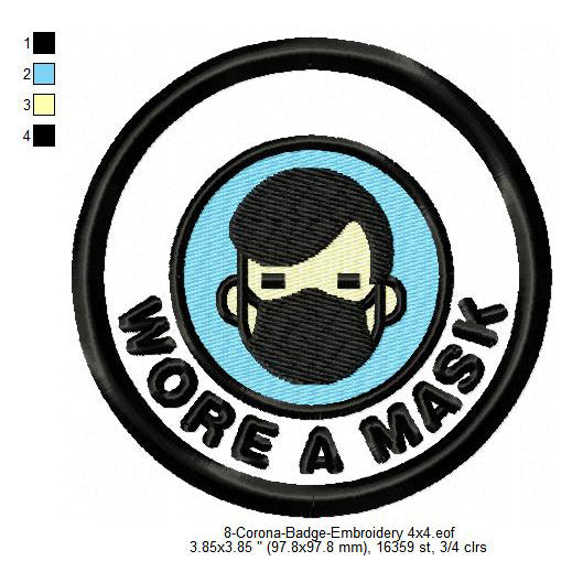 Wore A Mask Corona Awareness Badge Machine Embroidery Digitized Design Files