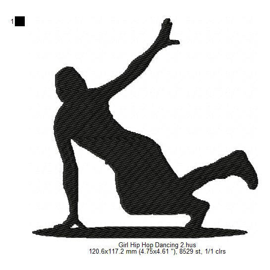 Young Girl Hip-Hop Dancing Silhouette Machine Embroidery Digitized Design Files